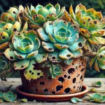 次に、葉の蒸れや腐敗が挙げられます。多肉植物の葉は水分を多く含んでいるため、湿度が高い状態が続くと蒸れやすくなります。蒸れた葉は細菌やカビの温床となり、病気の原因となります。特にロゼット状の多肉植物は、葉の間に水が溜まりやすく、注意が必要です。